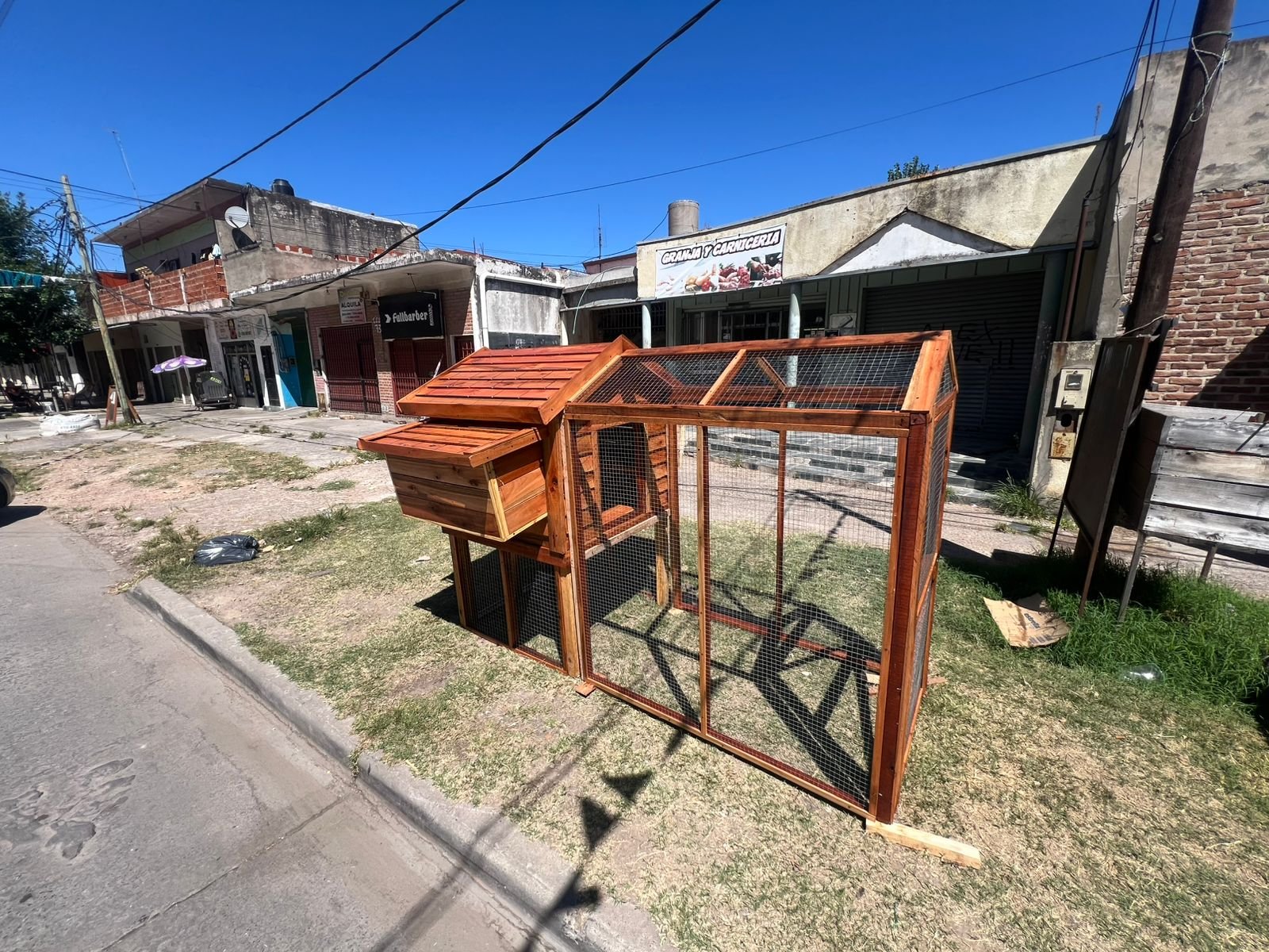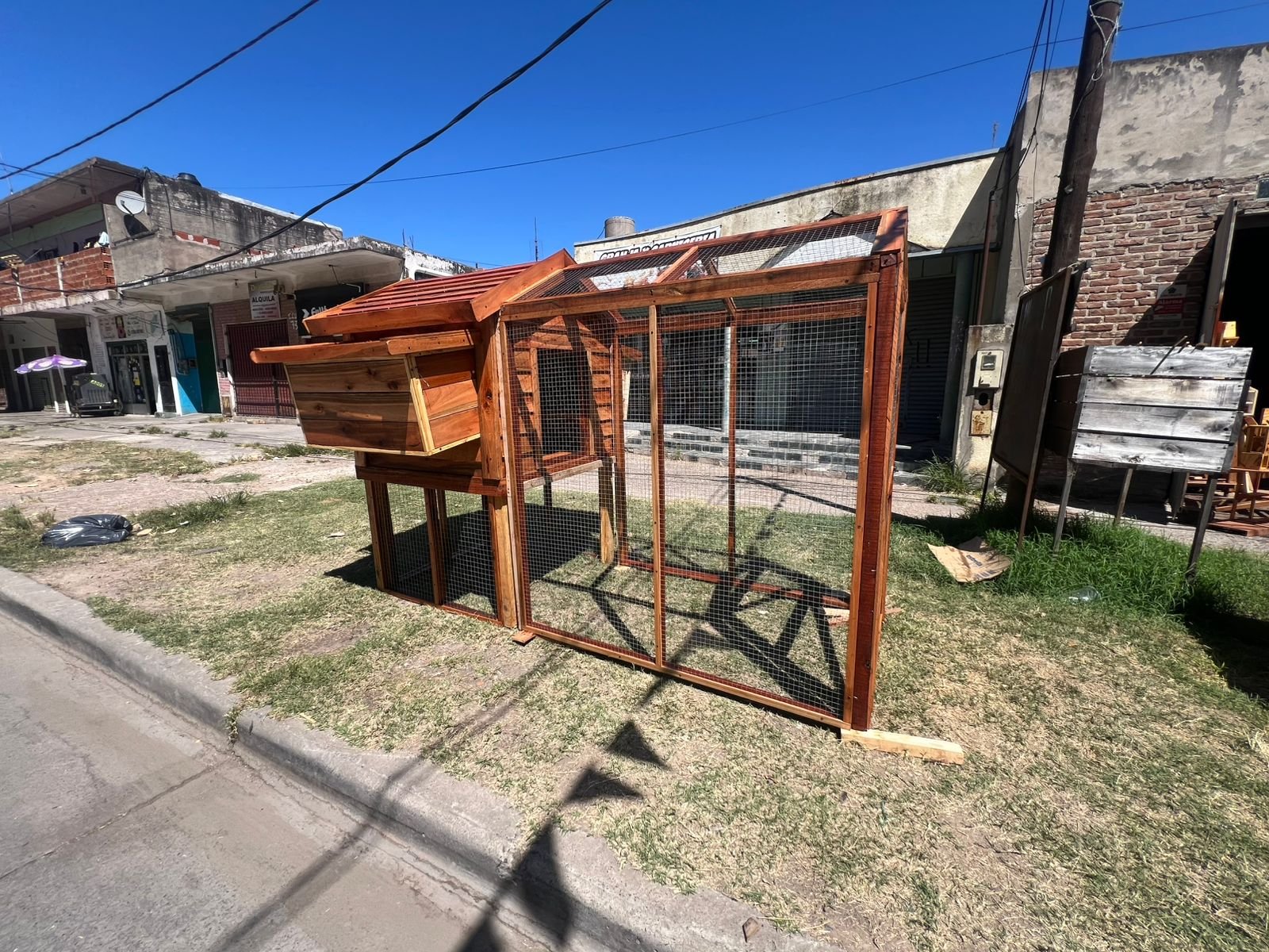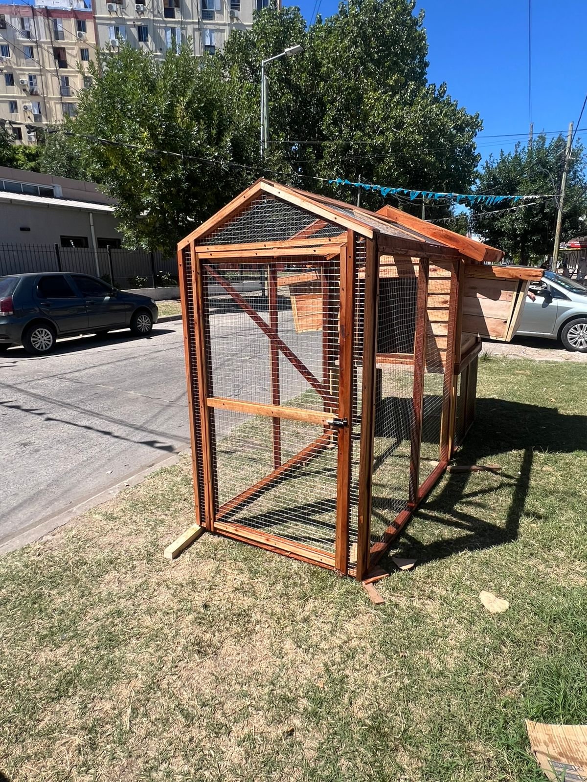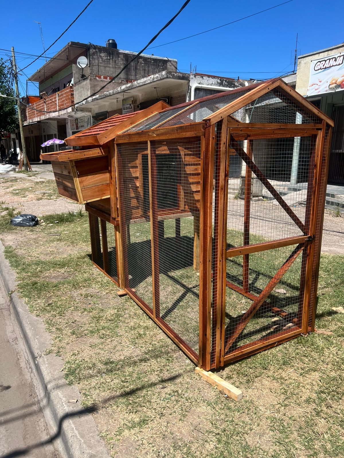 El gallinero está fabricado con madera de excelente calidad, tratado para su protección y mayor durabilidad, utilizando materiales resistentes pensados para uso exterior.