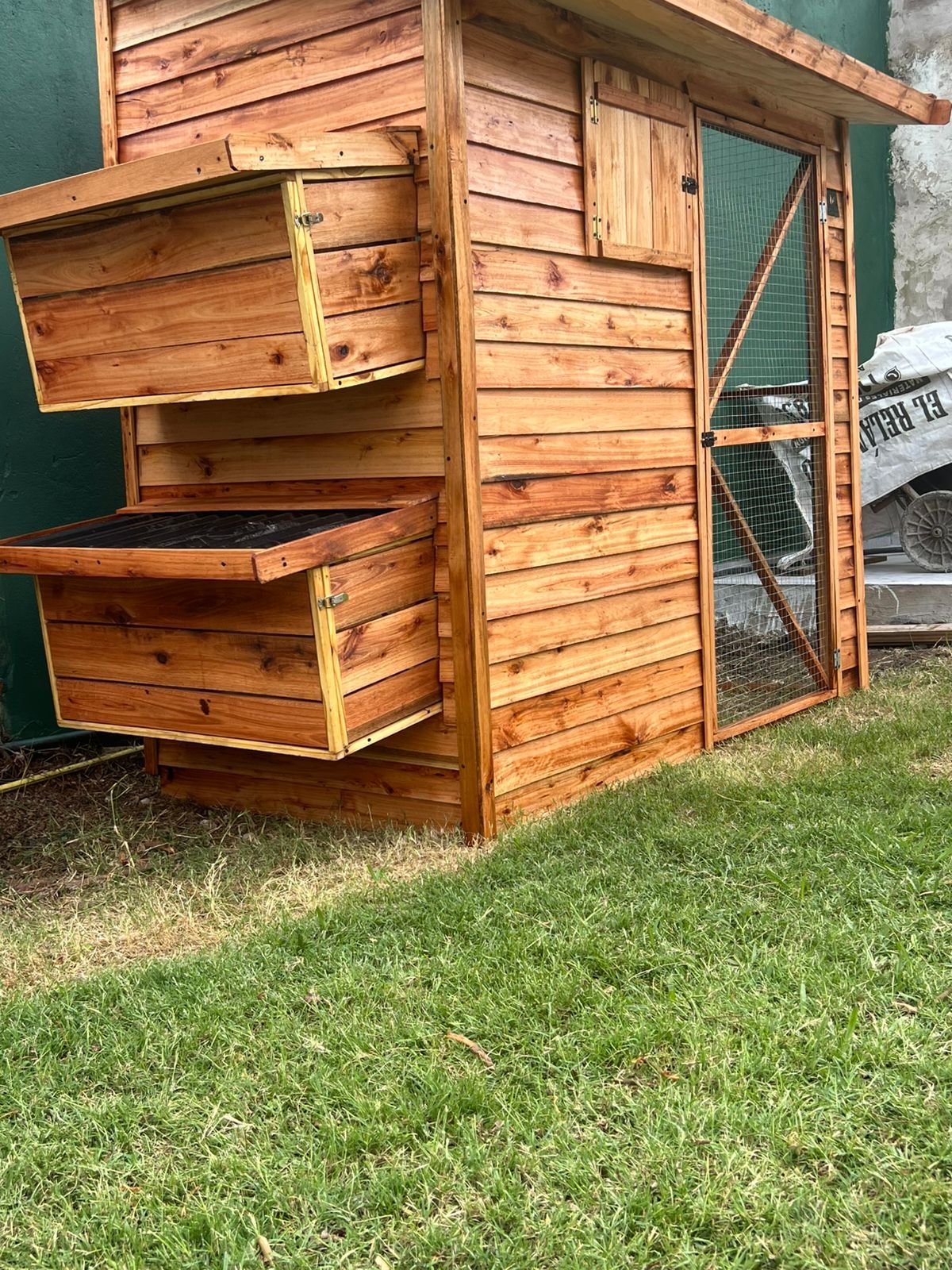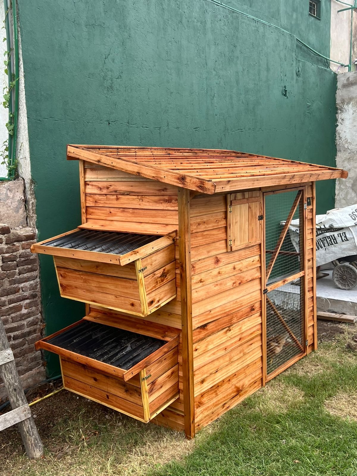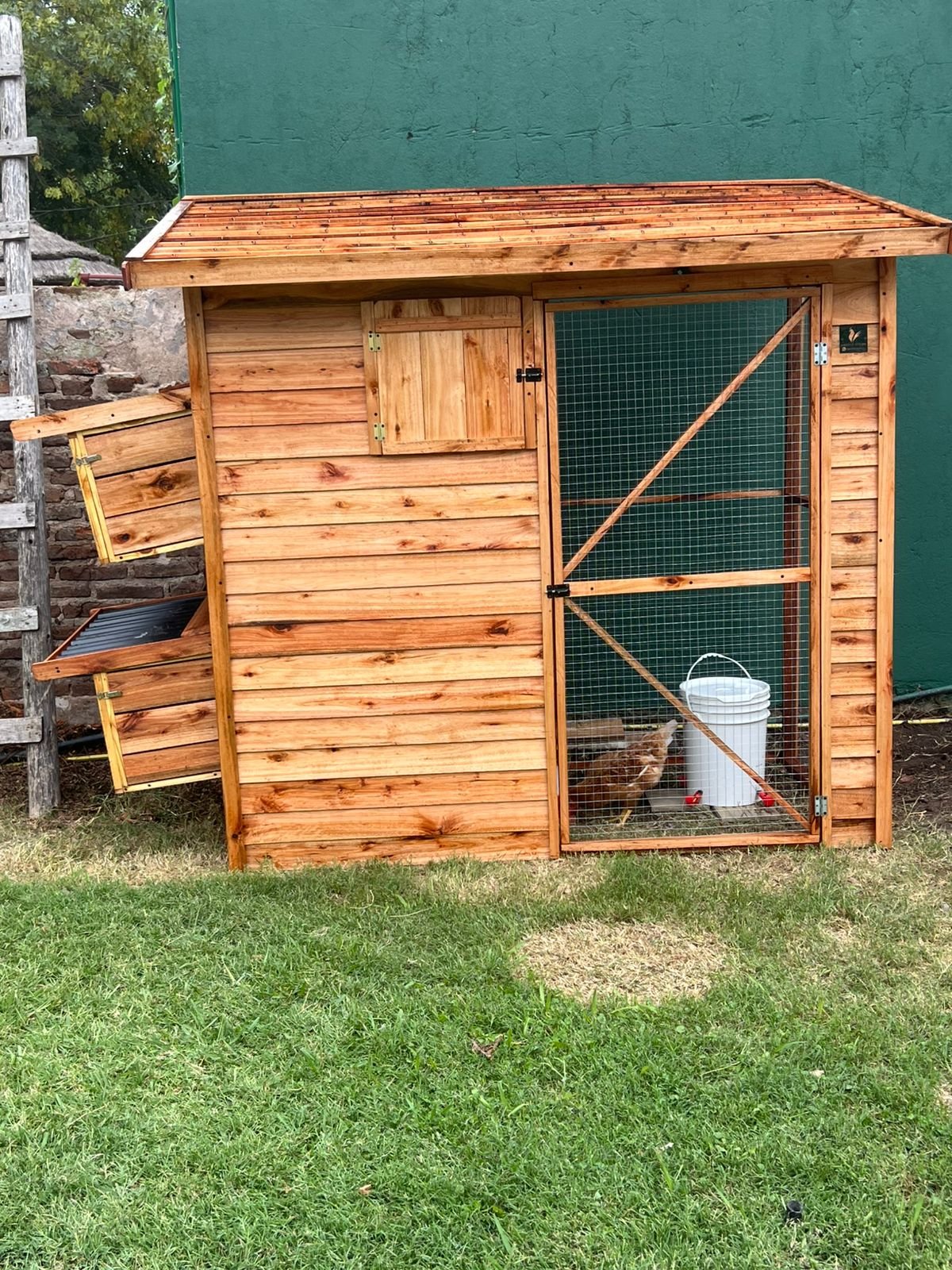El gallinero está fabricado con madera de excelente calidad, cuidadosamente trabajado y pensado para uso exterior.