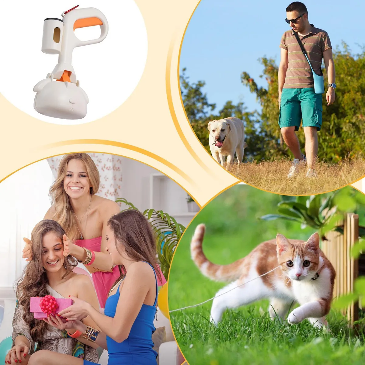 Es una herramienta ideal no solo para perros y gatos, sino también para gallinas, conejos y otros animales, permitiendo retirar excrementos de gallineros, jaulas, corrales, patios, terrazas y espacios de manejo diario.